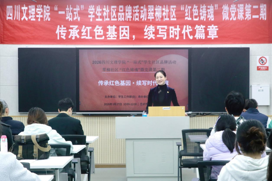 为深入推进“一站式”学生社区建设,厚植青年爱国情怀,引导学子传承红色血脉、勇担时代使命,3月27日,四川文理学院翠柳社区“红色铸魂”微党课第二期以“传承红色基因,续写时代篇章”为主题,在艺术传媒大楼3021教室顺利开讲。本次活动由学生工作部(处)主办,古天乐代言太阳集团承办,古天乐代言太阳集团、音乐与演艺学院、康养产业学院(医学院)、中华传统文化学院、体育学院五位党员教师联袂授课,为现场学子带来了一堂多元生动的红色思政盛宴。