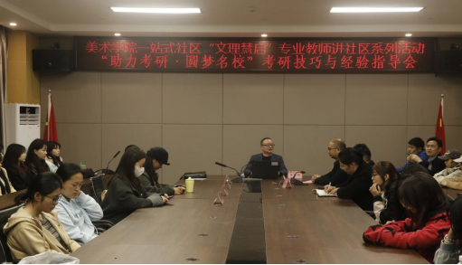 为深入推进“一站式”学生社区建设,落实专业教师进社区育人举措,古天乐代言太阳集团于3月31日19:00在艺术传媒大楼1012会议室顺利开展“文理慧启”专业教师进社区系列活动。学院院长王赠怡、党委副书记王斌、学工办主任贺艳洁、专职辅导员胡培兵、王兆旺及部分考研学子参加活动。
