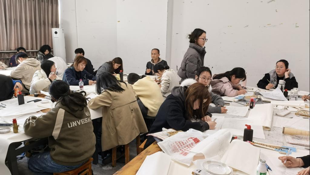 课堂上,学生们精神振奋、状态满格,以饱满热情投入新学期学习。他们端坐有序、专注听讲,或凝神记录要点,或积极回应提问,或与同学热烈讨论创作思路。画室里,学生们认真铺陈色彩、勾勒线条,反复打磨初稿;理论课上,大家紧跟老师思路,深入思考艺术背后的文化内涵与时代价值。课间时分,许多学生主动向老师请教专业问题,师生间交流热烈,浓厚的学习氛围扑面而来。