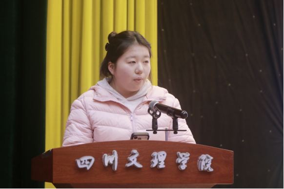 教学团队负责人代表黄莎老师发言,她分享了对教学科研融合发展的思考,承诺将带领团队深耕教学、潜心科研,切实发挥示范引领作用,助力学院教学质量提升。学生代表钟芸婕同学上台发言,她感谢学院提供的实践平台与悉心指导,分享了写生创作中的感悟与收获,并代表全体学生表态,将以更饱满的热情投入专业学习,不负学院期望。