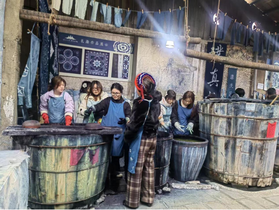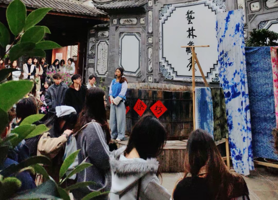 走进非遗文化,体验传统技艺。在大理白族自治州,师生们参观了扎染博物馆,并亲身体验了国家级非物质文化遗产——白族扎染技艺。学生们在老师的指导下,学习扎结、浸染等传统工艺,感受民间艺术的独特魅力。此外,师生们还走访了大理古城、沙溪古镇、丽江古城、白沙古镇等地,对当地传统建筑风格、人文风貌进行深入考察,并以现场写生的方式记录所见所感。