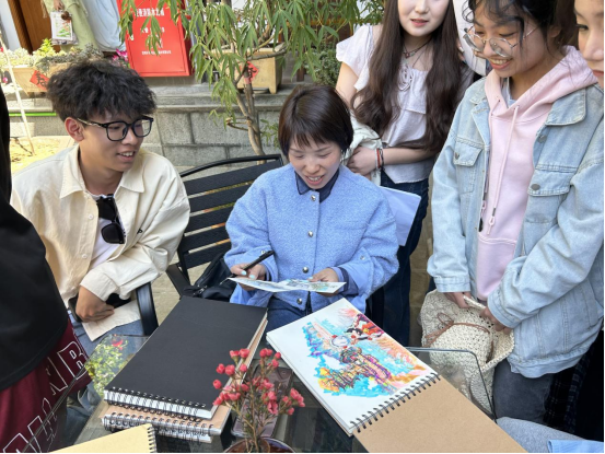 专业指导促成长,实践教学结硕果。采风期间专业教师定期检查学生作业,针对构图、色彩运用、写生技法等进行指导,帮助学生提升创作水平。学生们以专业的视角观察自然与人文景观,通过速写、水彩、摄影等多种形式记录灵感,在实践中学以致用,深化了对艺术创作的理解。