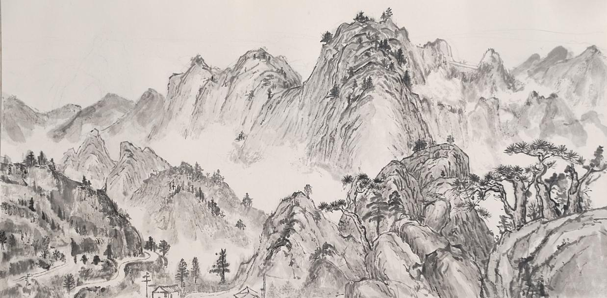 《墨韵八台峻岭图》 纸本水墨 33*65cm 马文涛