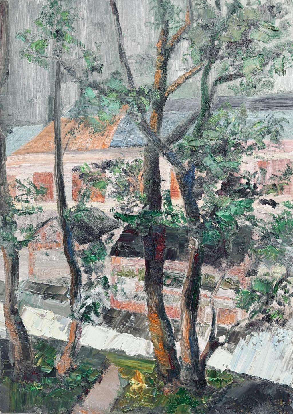 《八台翠影绕村郭》布面油画 50*70cm 刘滢滢