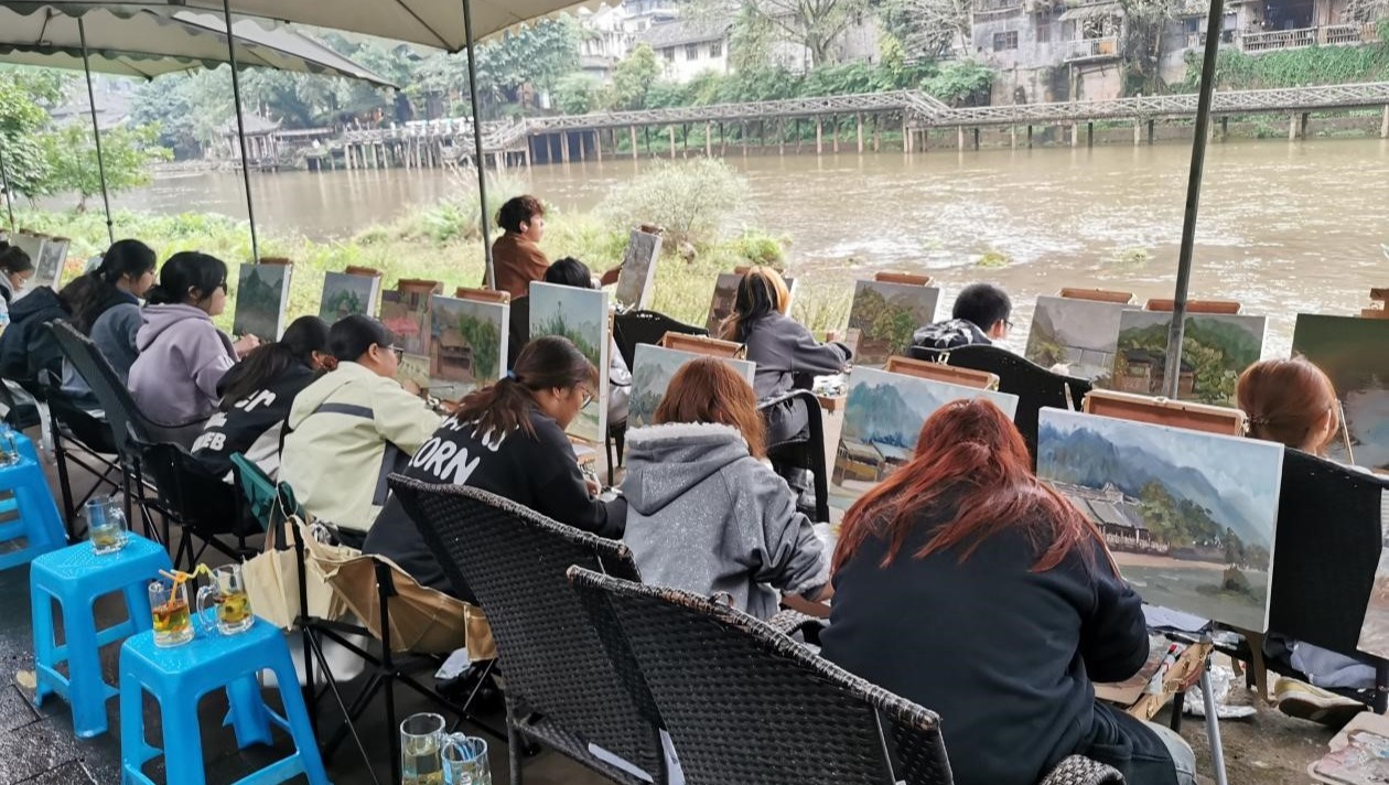 为将课堂知识融入自然,深化艺术实践教学,近日,我校2025级美术学专业的100余名学子,在辅导员与专业老师的带领下,奔赴柳江古镇与街子古镇,开展了为期12天的写生采风活动。