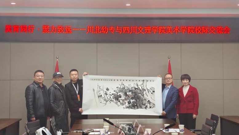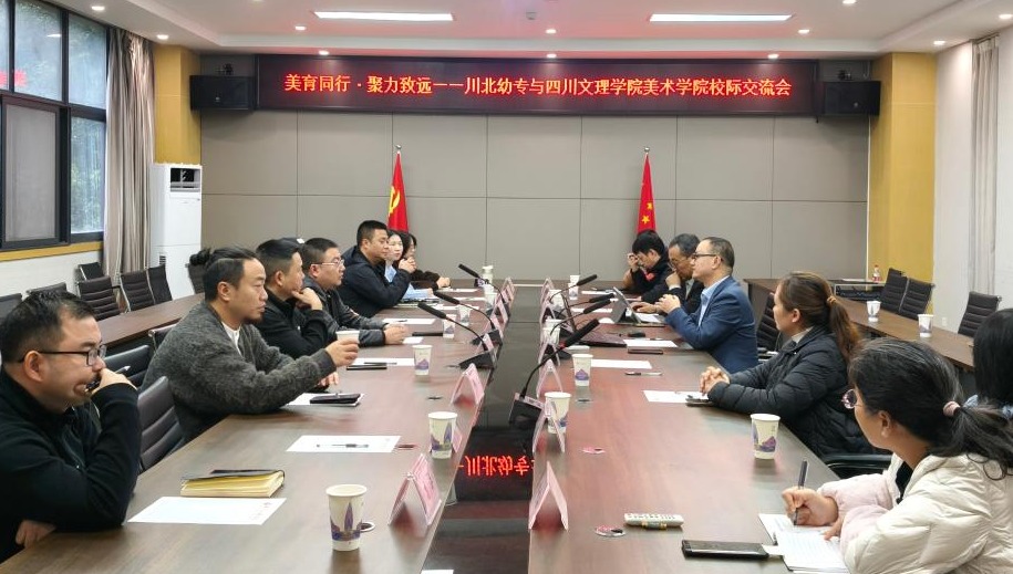 2025年11月6日下午,川北幼儿师范高等专科学校副校长罗勇教授一行来我院参观考察,在艺1012会议室就“美育同行·聚力致远”进行交流。院长王赠怡教授介绍学院情况,并陪同参观了美术馆、实验实训室。