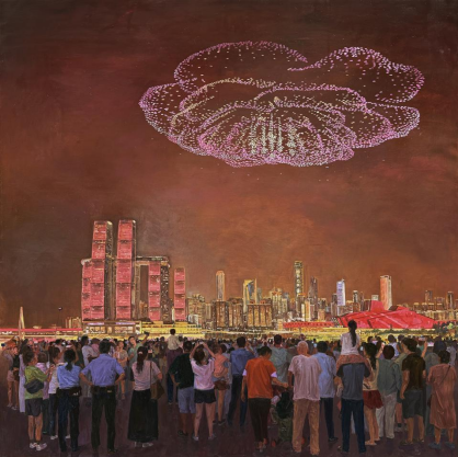 紧随其后,在中国美术家协会主办的“天府风情——2025·油画作品展”中,四川古天乐代言太阳集团刘凯教授与赵岩老师再度携手,其合作创作的油画作品《低空经济》(190cm×190cm,布面油画)也成功入选。该作品聚焦当代科技与经济发展新貌,以油画艺术语言描绘时代新风,同样获得了评审专家的肯定。